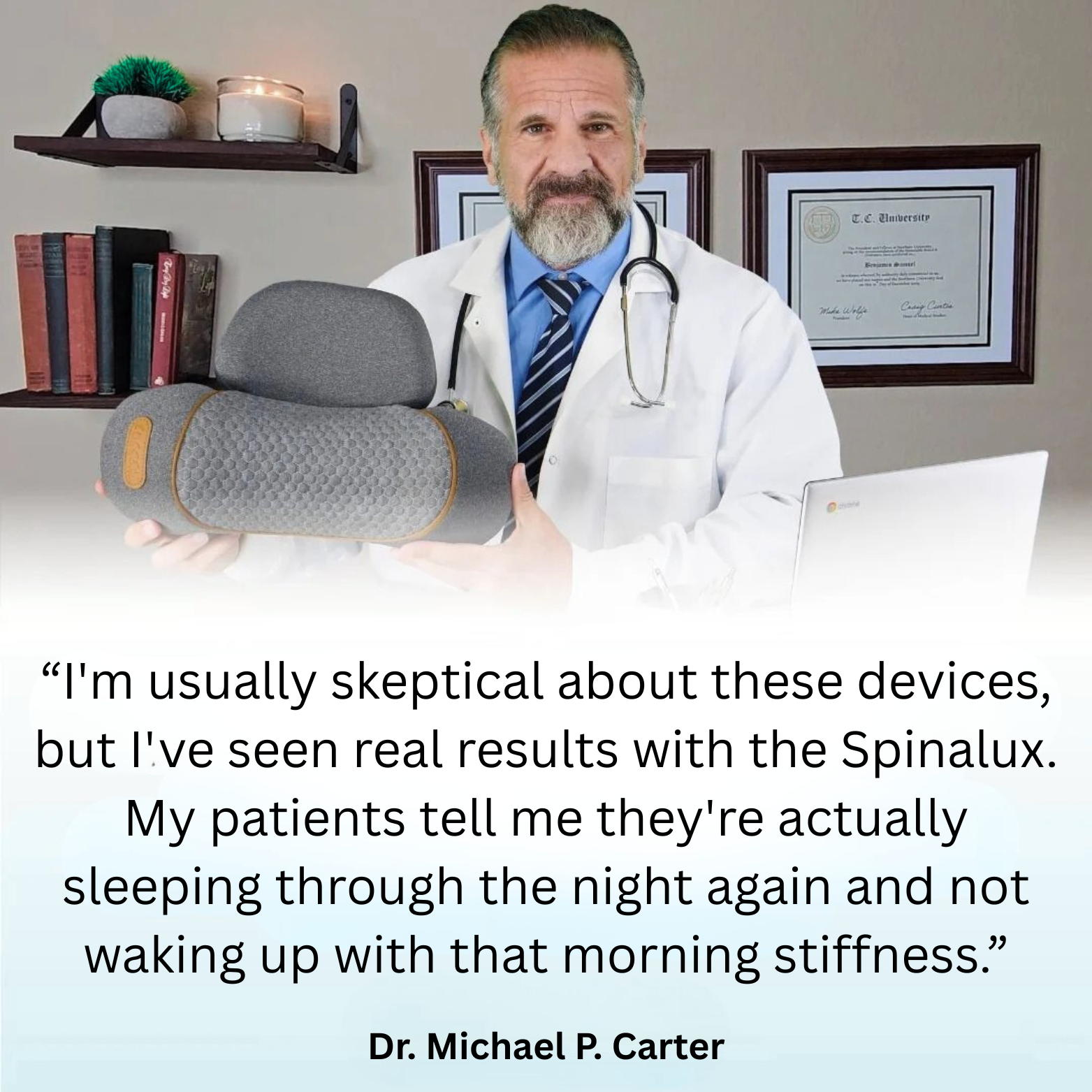 Spinalux™ Therapy Pillow: The breakthrough device that eliminates neck pain in just 15 minutes of daily use.